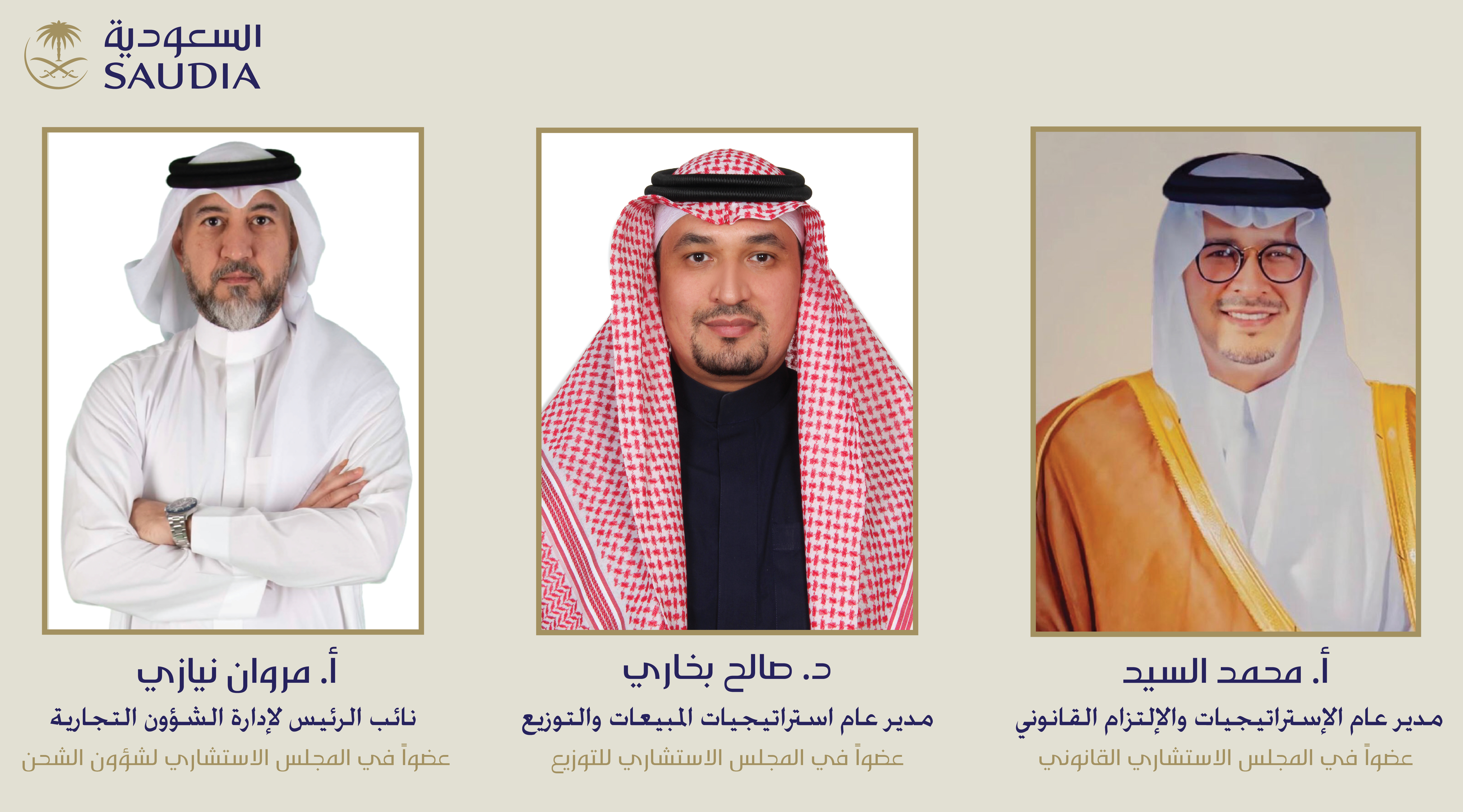 فقد انضم كل من مساعد الرئيس التنفيذي للشؤون التجارية بشركة الخطوط السعودية للشحن الأستاذ مروان نيازي للمجلس الاستشاري لشؤون الشحن في "اياتا"، ومدير عام الاستراتيجيات والامتثال القانوني في شركة الخطوط السعودية للنقل الجوي الأستاذ محمد السيد في المجلس الاستشاري للشؤون القانونية، ومدير عام استراتيجيات المبيعات والتوزيع بشركة الخطوط السعودية للنقل الجوي الدكتور صالح بخاري في المجلس الاستشاري للتوزيع.
